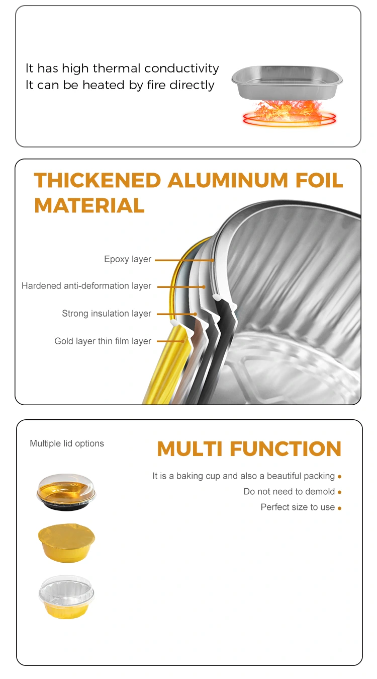 2. V týchto strieborných hliníkových fóliových nádobách na uskladnenie potravín sa používa potravinárska hliníková fólia, ktorá vyhovuje národným normám, prešla prísnou kontrolou kvality a neuvoľňujú sa žiadne škodlivé látky. Bezpečne pojme rôzne prísady, vrátane kyslých a mastných jedál. Jeho používanie je úplne bez starostí.