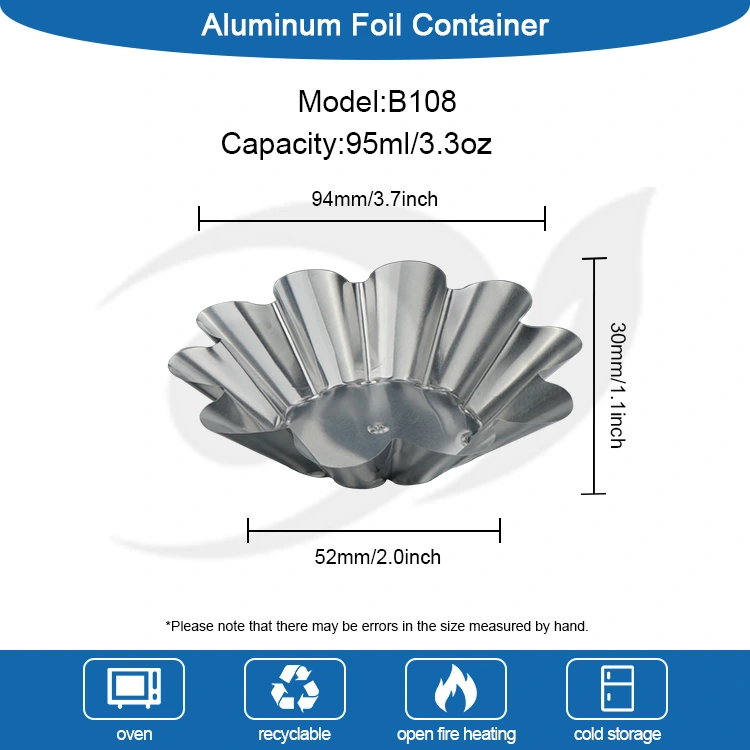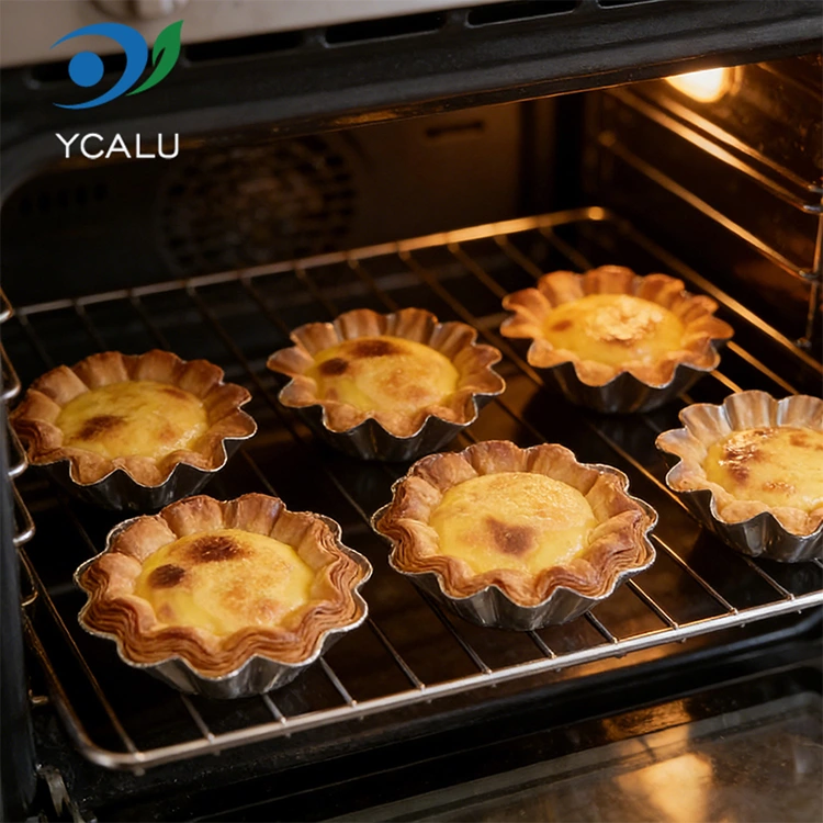 Jednorazová nádoba na chryzantémový vaječný koláč od dodávateľa Yunchu z hliníkovej fólie používa hliníkovú fóliu potravinárskej kvality, ktorá spĺňa testovacie normy SGS. Neobsahuje ťažké kovy, zápach a stabilné chemické vlastnosti. Hustá vrstva oxidu na povrchu môže účinne izolovať reakciu medzi jedlom a nádobou. Neprodukuje škodlivé látky a môže byť v priamom kontakte so všetkými druhmi potravín. Či už ide o pečenie pri vysokej teplote alebo o chladenie pri nízkej teplote, bezpečnosť potravín môže byť zaručená. Klasický dizajn chryzantémovej čipky má hladké a jemné línie a pravidelný tvar. Po upečení si nevyžaduje dodatočnú úpravu. Má jemnú textúru, ktorá okamžite zvyšuje úroveň vaječných koláčov a občerstvenia. Či už ide o rodinné zdieľanie, sviatočné stolovanie alebo pracovné stolovanie, dá sa ľahko rozlíšiť. Telo pohára je vyrazené z jedného kusu, bez medzier na spojovanie, a dno je ploché a stabilné, takže je ťažké spadnúť pri vložení do pekáča alebo rúry.