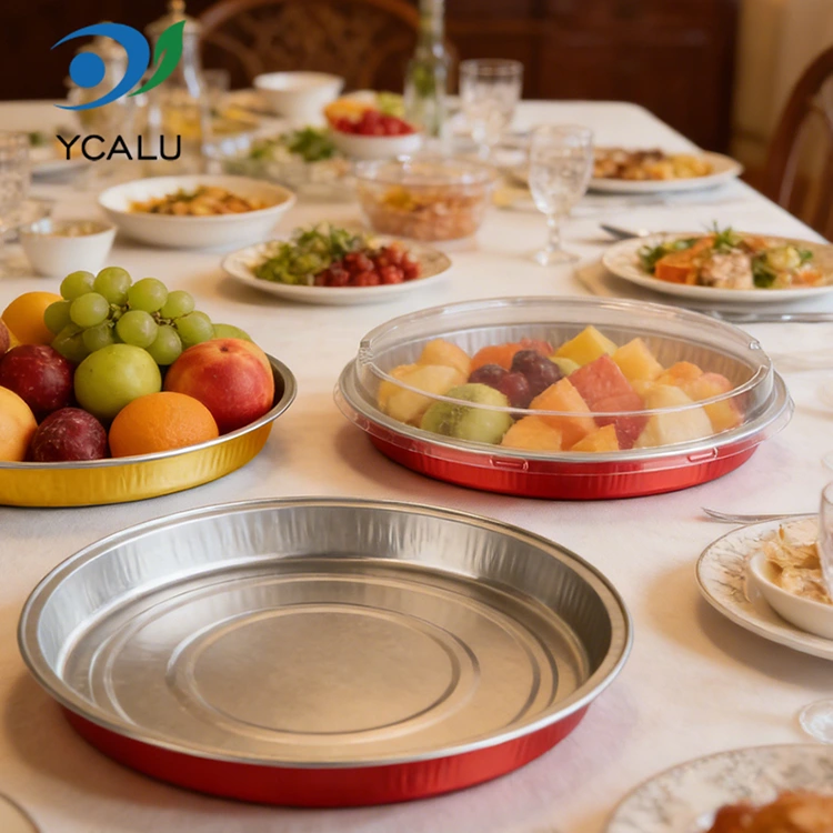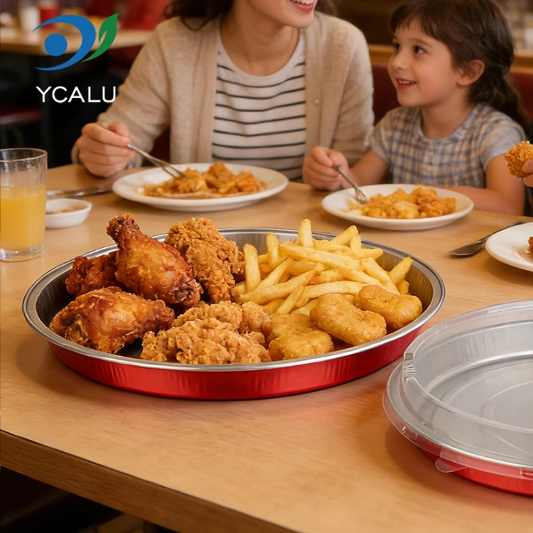 Dodávateľ hliníkovej fólie Yunchu C900 na jednorazové balenie pizzovej panvice okrúhly kontajner z hliníkovej fólie má hladký a krásny povrch a vynikajúcu textúru. Dizajn má okrúhly tvar s vonkajšími okrajmi, čo nielen zlepšuje celkovú estetiku, ale tiež umožňuje používateľom ľahko ho uchopiť na hladkých povrchoch, aby sa predišlo pošmyknutiu, pričom sa zohľadňuje praktickosť aj pohodlie. Jeho rozumný konštrukčný dizajn je vhodný na použitie v potravinách vo viacerých scenároch. Môže byť široko používaný pri výrobe pizze, nakladaní ovocia, malých balení na montážnej linke atď. Má silnú prispôsobivosť. Či už ide o pekáreň, reštauráciu, bufet a iné cateringové scény, táto kombinácia môže vyzdvihnúť kvalitu a stať sa ideálnou voľbou pre spotrebiteľov. Zároveň je možné nádobu prispôsobiť plne priehľadným PET materiálom, potiahnutým hliníkovým fóliovým tesniacim vrchnákom atď., Ktoré dokážu nielen efektívne zaistiť bezpečnosť pri preprave a zabrániť úniku a poškodeniu potravín, ale tiež jasne zobraziť pôvodný vzhľad produktu a zlepšiť účinnosť produktu.