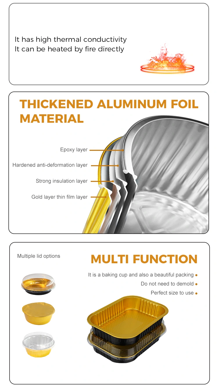 Jednorazové obdĺžnikové nádoby z hliníkovej fólie dodávateľa Yunchu na vyberanie z hliníkovej fólie sú vyrobené z potravinárskej kvality. Boli prísne spracované a preosiate a nemajú žiadny zvláštny zápach. Celý výrobný proces prebieha v čistej a bezprašnej dielni bez akýchkoľvek škodlivých prísad. V priamom kontakte môže byť aj ryža, mäso, polievka atď. Tento kontajner z hliníkovej fólie prešiel americkou certifikáciou FD A pre potraviny, prísne podľa noriem FDA. Po odbornom testovaní je množstvo migrácie hliníka oveľa nižšie ako stanovený limit a test je na úrovni. Získali sme formálnu správu o teste. Uplatní sa nielen v domácom stravovaní, ale plne vyhovuje aj požiadavkám na export do zámoria. Dvojitá záruka, či už ide o reťazec rýchleho občerstvenia, privátnu kuchyňu alebo cezhraničných predajcov so sebou, dá sa použiť Je spoľahlivý a bez problémov odolá extrémnym teplotným rozdielom od -20°C do 250°C. Od chladenia a mrazenia v chladničke až po mikrovlnný ohrev, pečenie v rúre a dokonca aj ohrev otvoreným plameňom (vyžaduje tepelne izolačné nástroje), môže byť použitý na balenie horúcej polievky a horúcich jedál na vytiahnutie. Aj keď je nádoba dlho udržiavaná v teple, nezmäkne ani sa nedeformuje, neroztopí sa ani nebude produkovať škodlivé plyny; po prijatí jedla spotrebitelia nemusia vymieňať nádobu, ale vkladajú ju priamo do mikrovlnnej rúry na ohrev. Navyše vedie teplo rovnomerne, takže nedôjde k lokálnemu prehriatiu ani prichyteniu jedla pri ohrievaní. Dokáže zachovať chuť jedla v najväčšej miere. Či už ide o pečenú ryžu, prívarky, alebo grilované či pečené polotovary, je vhodný na balenie.