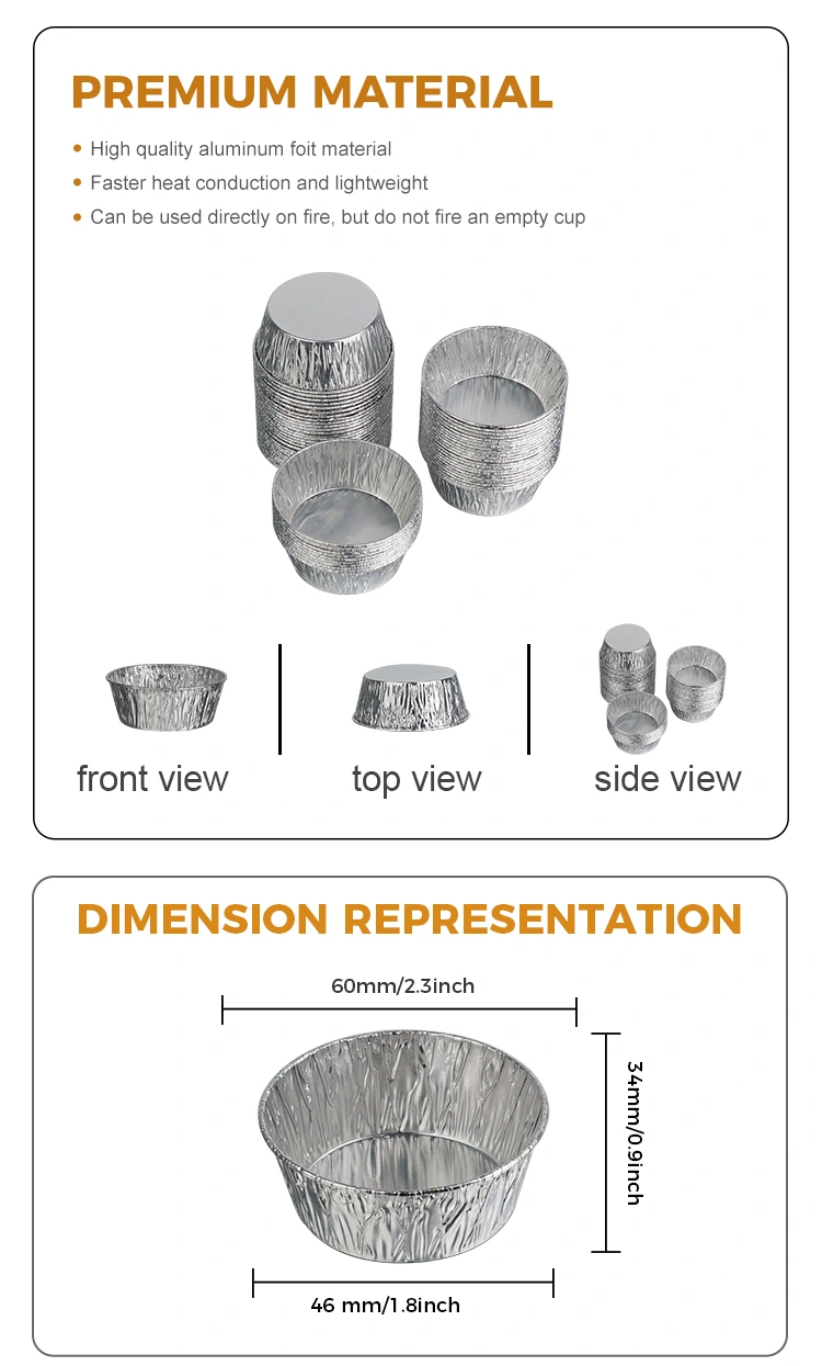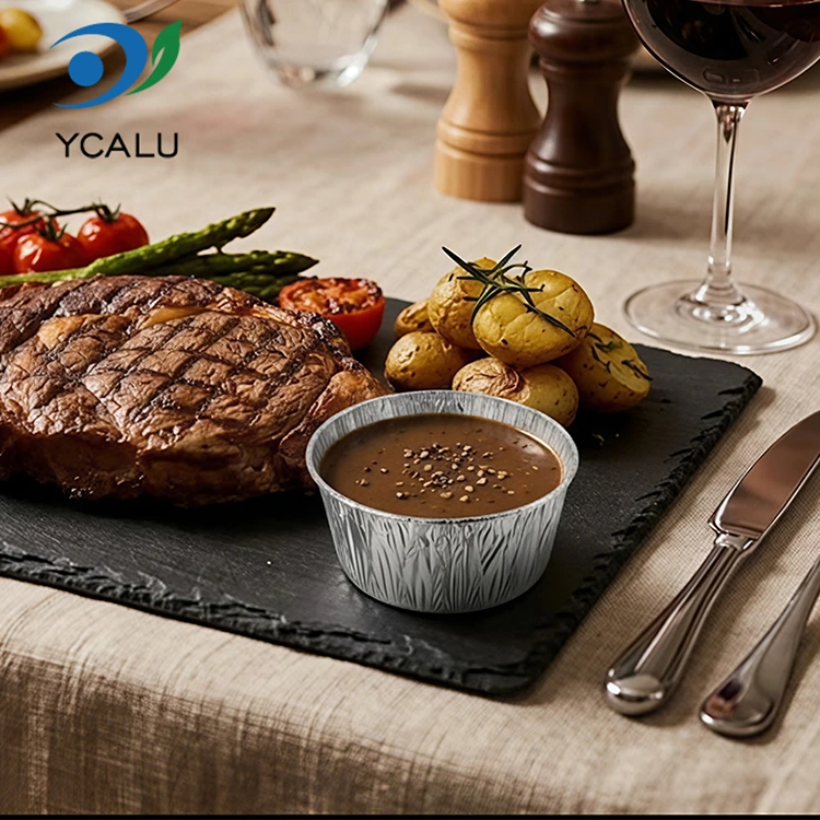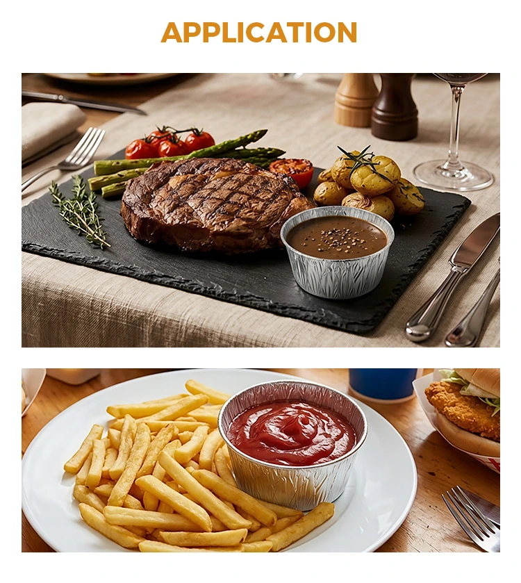 Jednorazové okrúhle omáčky Strieborné nádoby na potraviny z hliníkovej fólie