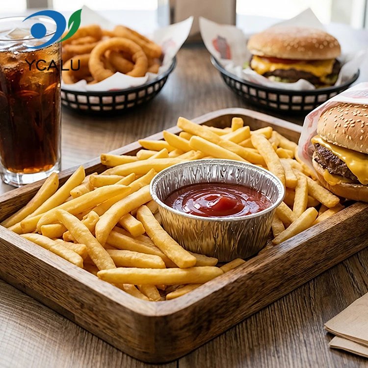 Dodávateľ hliníkovej fólie Yunchu Jednorazová okrúhla omáčka vzduchová fritéza Strieborná hliníková fóliová nádoba Potravinová hliníková fólia Materiál, bez zápachu, bez zvyškov ťažkých kovov, spĺňa normy pre styk s potravinami, vysoká čistota a stabilné chemické vlastnosti. Aj keď je naplnená kyslými omáčkami a zahrievaná na vysoké teploty, neuvoľňuje škodlivé látky a pri priamom kontakte s potravinami sa môžete cítiť úplne bezpečne. Výrobok prešiel certifikáciou potravinárskej kvality FDA a prísne dodržiava normy súvisiace s FDA 21 CFR, po profesionálnom testovaní migrácie a detekcii ťažkých kovov je obsah škodlivých látok, ako je olovo a kadmium, hlboko pod bezpečnostným prahom a kvalifikácia je úplná. Či už ide o domáce alebo komerčné použitie, môžete si pokojne vybrať. Použite ho na porciovanie omáčok na marinovanie mäsa, šalátových dresingov k zelenine a octových jedál na namáčanie halušiek. Porcie sú tak akurát bez plytvania. Dokáže tiež zabrániť prenosu pachov a dá sa úhľadne skladovať v chladničke bez toho, aby zaberal miesto. Obchodníci so sebou ju používajú na skladovanie omáčok, ktoré sú zapečatené a nepriepustné a doručujú sa zákazníkom čisté. Či už ide o kečup, sladkú čili omáčku alebo hustú sezamovú omáčku, nebude hanba za vytekanie a zašpinenie jedla. Dokonca aj na vonkajšie pikniky a kempovanie si ich môžete vziať so sebou a použiť ich na uloženie omáčok. Je ľahký a nezaberá miesto. Po použití ho môžete ihneď vyhodiť. Nemusíte si domov nosiť kopu špinavých nádob. Ide hlavne o ľahkosť a bezproblémovosť.