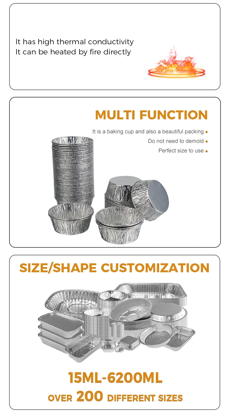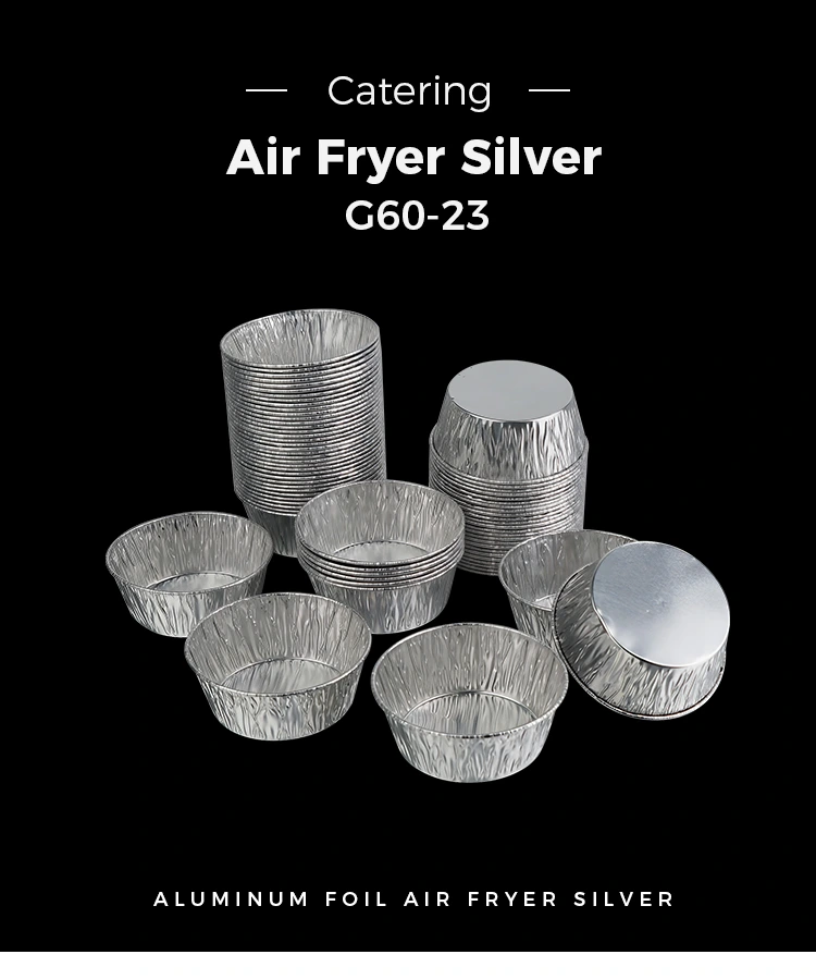Jednorazová vzduchová fritéza s okrúhlou omáčkou od dodávateľa Yunchu hliníkovej fólie Strieborná hliníková fólia Strieborná hliníková fólia má hrubú textúru a nie je ľahké ju poškodiť alebo zdeformovať. Aj keď obsahuje husté omáčky a polievkové prísady, dá sa pevne držať bez vytekania alebo zrútenia. Okraje sú zosilnené a stlačené, vďaka čomu sú hladké na dotyk, nepoškriabu vaše ruky a manipulácia s nimi je bezpečnejšia. Jednorazový dizajn, po použití vyhoďte, čo vám ušetrí problémy s čistením nádoby. Môže to nielen zlepšiť efektivitu, ale aj udržiavať čisté a upratané prostredie v situáciách, ako je balenie so sebou, cateringové obchody, kempovanie a pikniky. Okrem toho je materiál hliníkovej fólie recyklovateľný, ekologický a šetrný k životnému prostrediu a nespôsobí príliš veľkú záťaž pre životné prostredie, ak sa po použití zlikviduje, berúc do úvahy pohodlie a ochranu životného prostredia.
