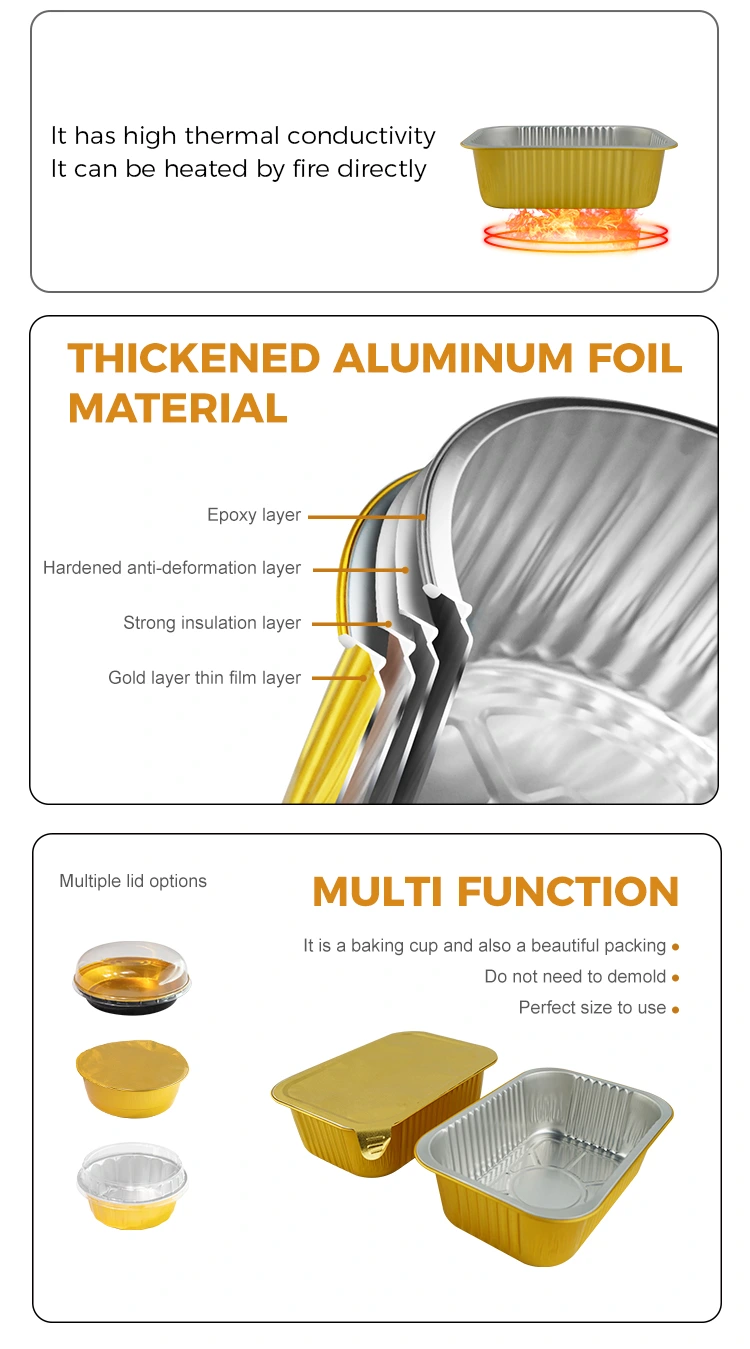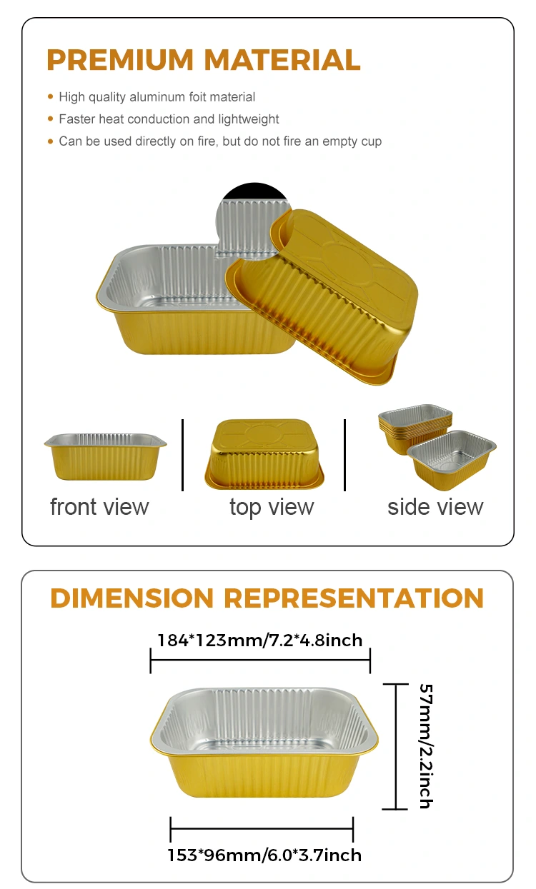 Yunchu hliníková fólia jednorazové štvorcové tesnenie hliníkových kontajnerov hliníkovej fólie, vhodné na jednu porciu pečenej ryže alebo pečených cestovín a iných jedál, obalov obedových obedov a obedov na obed a odoberanie, vopred vyrobené jedlá môžu zvoliť výrobky z obalov, tento bezohľadný štvorcový gratinový hliníkový nádoby s gratinovým hlinitým s groutovou hlinitou s medza podriadeným s medziobračným podnikom. Pri tepelnom tesniacich filmoch môže dosiahnuť efektívne tesnenie a účinne zabrániť úniku polievky, ktorá je vhodná pre automatické tesniace zariadenia. Povrch kontajnera je hladký a plochý, ktorý sa ľahko označuje a je krásny a veľkorysý, čo pomáha vylepšiť obraz značky. Je odolný voči vysokým a nízkym teplotám, môže sa použiť v teplotnom rozsahu -20 ° C až 250 ° C a podporuje rôzne metódy zahrievania, ako je chladenie, pečenie a naparovanie. Materiál hliníkovej fólie je 100% recyklovateľný a udržateľný.