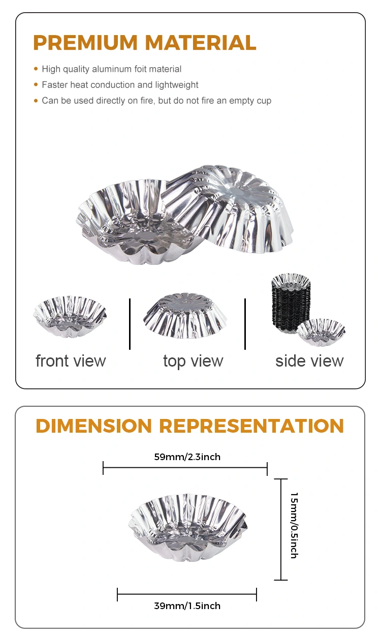 Vaječné koláče dodávateľa hliníkovej fólie Yunchu sú pečené vo vzduchovej hliníkovej hliníkovej fóliovej nádobe, nekĺzavej šálke tela, protišmyku, viacerým dizajnom, jednorazovým používaním, bez potreby, ktoré sa používajú, široké, široké, široké použitie, môžu sa používať na pečenie vaje lupienky, misky a ďalšie pochúťky. Spoločnosť Yunchu schválila certifikáciu nemeckého ERP, certifikáciu EÚ SGS a certifikáciu systému riadenia kvality ISO9001. Používame zdravé materiály pre potraviny šetrné k životnému prostrediu na zaistenie bezpečnosti a netoxickosti našich výrobkov. Tieto materiály sú nielen obnoviteľné, ale tiež šetrné k životnému prostrediu, čo odráža naše prísne požiadavky v oblasti bezpečnosti potravín a náš záväzok vykonávať vysokokvalitné normy pre naše celkové výrobky.