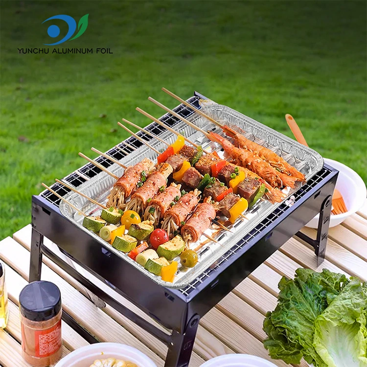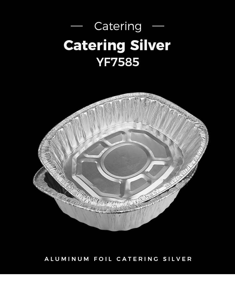 Yunchu hliníková fólia Veľkoobchod Veľká kapacita grilované kuracie mriežky strieborné kontajnery hliníkovej fólie, veľká kapacita sa dá prispôsobiť širokému rozsahu, scéna je rovnaká, cesta s jedlom, veľkoobchodné toky, veľké večierky, môžu poskytnúť veľké porcie reštaurácií, prefabrikované jedlá, ktoré prefabrikujú, akúkoľvek prefabrikované jedlá Zahrievaná a používaná vo vonkajších a iných scenároch, celková štruktúra kombinuje výstuhy a spodnú časť pravidelného konkávneho a konvexného tvaru, takže je zaručená jeho trvanlivosť a bezpečnosť.