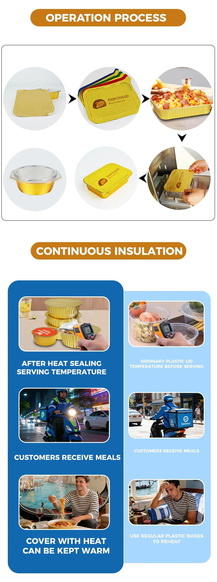 Lepšie kontrolovateľné náklady: Kombinácia ručného stroja na tepelné zváranie so zlatými hliníkovými fóliovými kontajnermi rieši dve hlavné požiadavky na "baliace kontajnery + uzatváracie zariadenie", čím sa eliminuje potreba samostatných nákupov a znižujú sa obstarávacie náklady. Zároveň znižuje popredajné straty spôsobené poškodenými obalmi a znehodnotením potravín a nepriamo zvyšuje ziskovú maržu.
