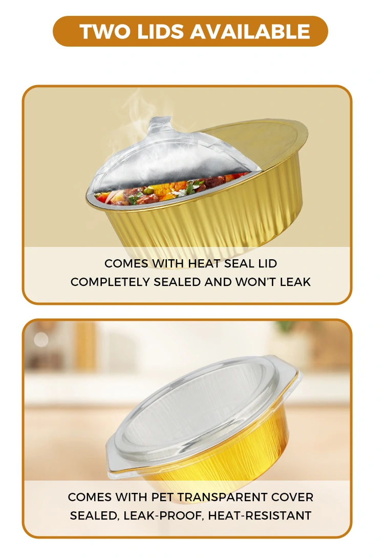 Yunchu je profesionálny výrobca a dodávateľ hliníkových fóliových kontajnerov v Číne. Náš ručný stroj na tepelné zváranie so zlatými hliníkovými fóliami má dvojité výhody úrovne vzhľadu a pevnosti. Stala sa preferovanou kombináciou pre stravovanie so sebou, skupinovú donášku jedál a potravinársky priemysel pripravených na konzumáciu. Dokáže nielen vyzdvihnúť kvalitu značky, ale aj vyriešiť problém balenia, znížiť náklady a zvýšiť efektivitu pre obchodníkov a poskytnúť spotrebiteľom upokojujúci zážitok.