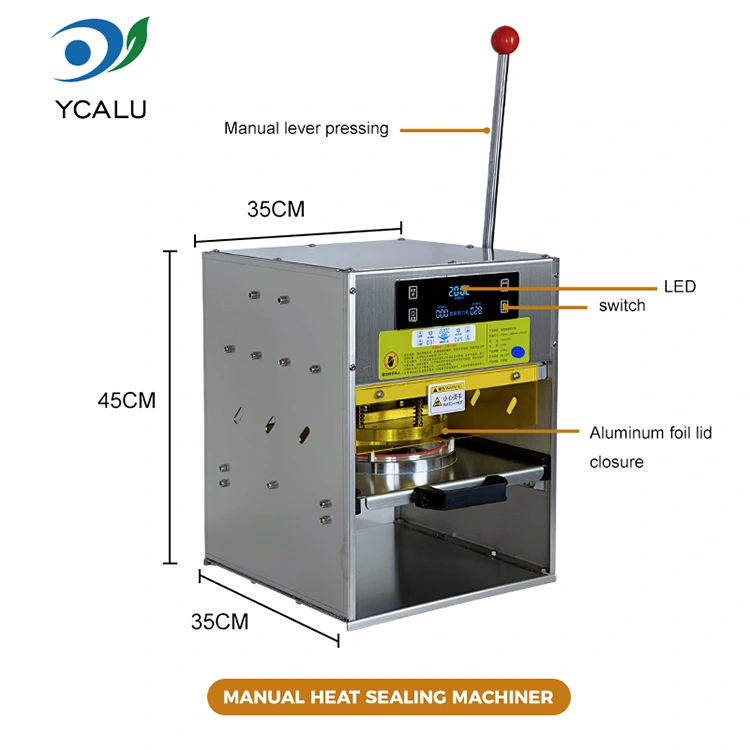 Ručný stroj na tepelné zváranie dodávateľa Yunchu so zlatými hliníkovými fóliovými kontajnermi dokáže presne utesniť a predĺžiť trvanlivosť: Je vybavený komponentom na presnú reguláciu teploty. Utesnený okraj je plochý a pevný, čo môže účinne zabrániť vniknutiu vzduchu, vlhkosti a baktérií a predĺžiť dobu čerstvosti potravín 3 až 5-krát. Rieši hlavné bolestivé body varených potravín, ktoré sú náchylné na miešanie chutí, čerstvé potraviny sú náchylné na skazenie a omáčky náchylné na únik, pričom zachováva pôvodnú chuť jedla.