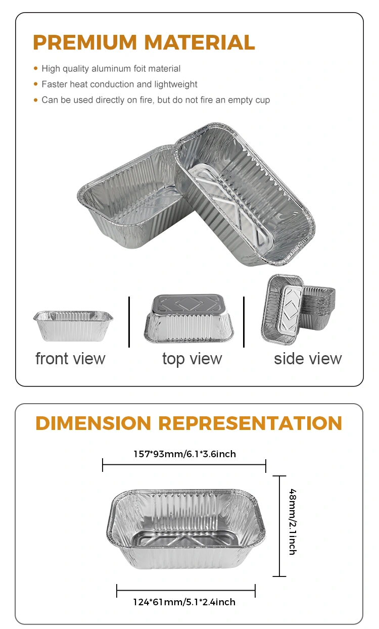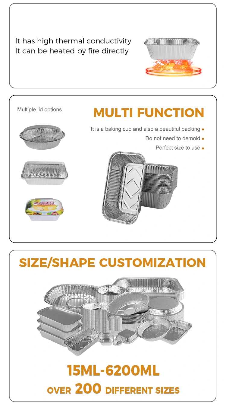 Obdĺžnikové nádoby na hliníkové fólie s hliníkom grilu, ktoré produkujú dodávateľ hliníkovej fólie Yunchu, je vhodné pre mnoho scenárov, ako sú napríklad objednávky stravovania, pekárenské koláče, rodinné občerstvenie a reštaurácie. Nádoba je vyrobená z hliníkového materiálu na hliníkovej fólii, čím sa zabezpečuje bezpečnosť počas procesu pečenia potravín. Táto nádoba je navyše vhodná aj na umiestnenie potravín, ovocie a zeleninové triedenie a ochutnávku občerstvenia nákupných centier. Kontajner je integrovaný ako celok a dizajn lemovania je premyslený, aby sa zabránilo poškriabaniu rúk. K dispozícii je pre vás na výber viac veľkostí, ktoré vyhovujú rôznym scenárom využívania. Ak máte akékoľvek otázky alebo potrebujete viac informácií, neváhajte nás kontaktovať.