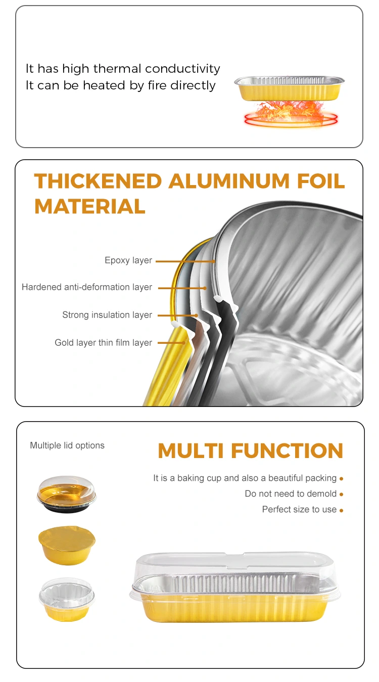 Vlastnosti: Vodotesné a olejové hrnce sa dajú ľahko čistiť po použití, chrániť vložku hrnca, vysoko odolnú voči tepelne a nebojácne od cirkulácie horúceho vzduchu, hliníková fólia má vysoký odpor, aby ste si mohli vychutnať zábavné jedlo, nie je ľahké ho spáliť, nie je ľahké sa rozbiť, vhodné pre rôzne varenia. Či už je to rodinná večera alebo zhromaždenie priateľov, pričom zabezpečuje lahodnosť a bezpečnosť jedla.