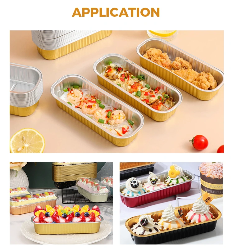 Hliníková hliníková fólia Yunchu M210 Obdĺžnikový koláč s hliníkovým fóliom s hliníkom fólie na pečenie je vhodný pre všetky druhy pochúťok, ktoré sa dajú použiť na výrobu hranoliek, vyprážaného kuracieho filé, vyprážané kuracie krídla, tvarohový koláč, koláč, atď.