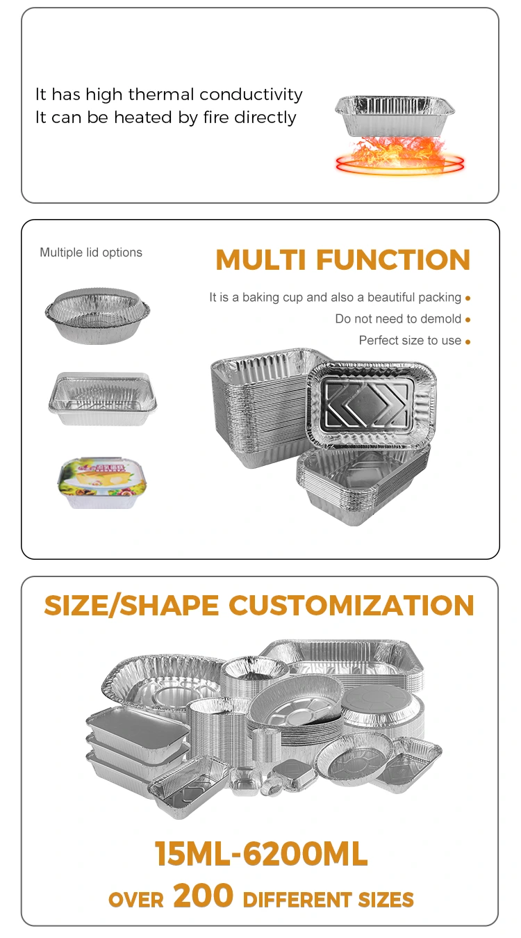 Obdĺžnikové kontajnery hliníkovej fólie na pečenie