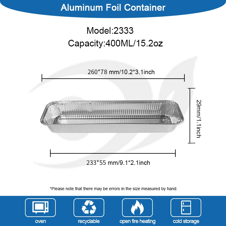 Hliníková hliníková fólia Dodávateľa hliníka Fóliu, obdĺžnikový chlieb, fritézu strieborné hliníkové nádoby, špeciálne používané na pečenie chleba, sa môžu tiež používať ako misa na plechovku, vhodnú na chlieb, pečenie, toast, pečenú ryžu a ďalšie potraviny. Táto kontajner má širokú škálu použití, hliníkový materiál hliníkovej fólie na úrovni potravín, trvanlivý a nie je ľahký, ktorý sa dá zlomiť, materiál na stravovanie, sa môže použiť v peci, grilovacie grily, vzduchové fritézy a ďalšie vybavenie. Materiály s potravinami sa dajú ľahko čistiť, dajú sa použiť priamo v kontakte s jedlom, môžu byť po jednom použití vyradené, nie je ľahké spáliť spodnú časť, jednoduché demoldingové, vysokokvalitné prísady sú rovnomerne vyhrievané, môžu byť priamo vymazané, nie je ľahké spáliť dno. Podporte veľkoobchodné objednávanie kombinácie hliníkovej fólie a môže poskytovať služby prispôsobenia tlače vzorov s jedným MOQ s 1 000 kusmi. Tento obdĺžnikový kontajner hliníkovej fólie striebra na grilovanie poskytuje rôzne špecifikácie a modely, z ktorých si môžete vybrať, v prípade potreby sa obráťte na predajné personály na konzultáciu.