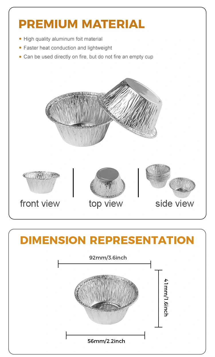 Funkcie: Round Bake Cake Strieborná hliníková fóliová nádoba na fóliu je zdravá a ekologická, nemusí sa čistiť, je vhodný na výrobu rôznych domácich pečených občerstvení a je tiež nevyhnutným produktom pre pekárne, materiál hliníkovej fólie je bezpečný a hygienický, bez čistenia, môže byť pečený na otvorenom plameňoch, čo je vhodné na výrobu potravín.