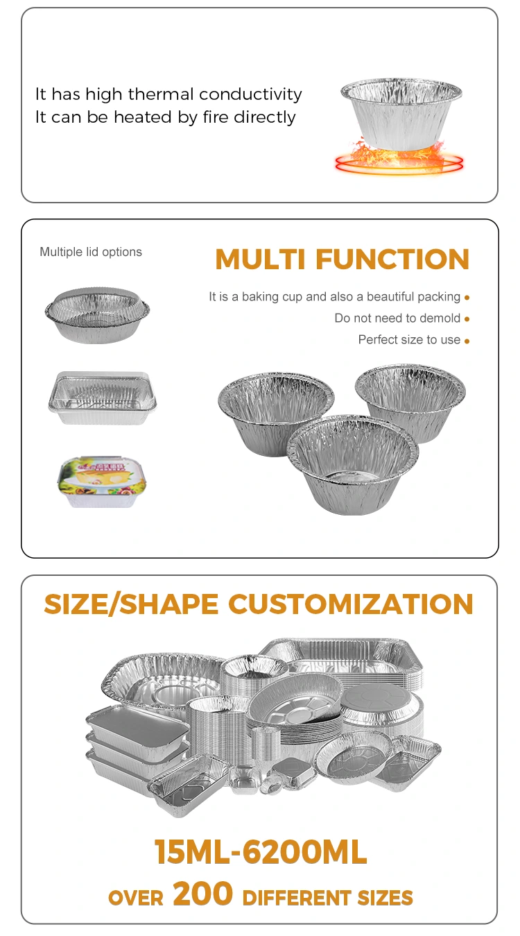 Po druhé, počas pečenia, okrúhla koláčová koláč strieborná hliníková fóliová nádoba na nádobu vyniká. Má dobrú tepelnú vodivosť a počas pečenia môže rovnomerne distribuovať teplo, vyhýba sa prehriatiu alebo spálenia dna. Zároveň je jej stabilita tiež veľmi dobrá, udržiava štrukturálnu stabilitu aj vo vysokoteplotných prostrediach a nie je ľahko deformovaná.