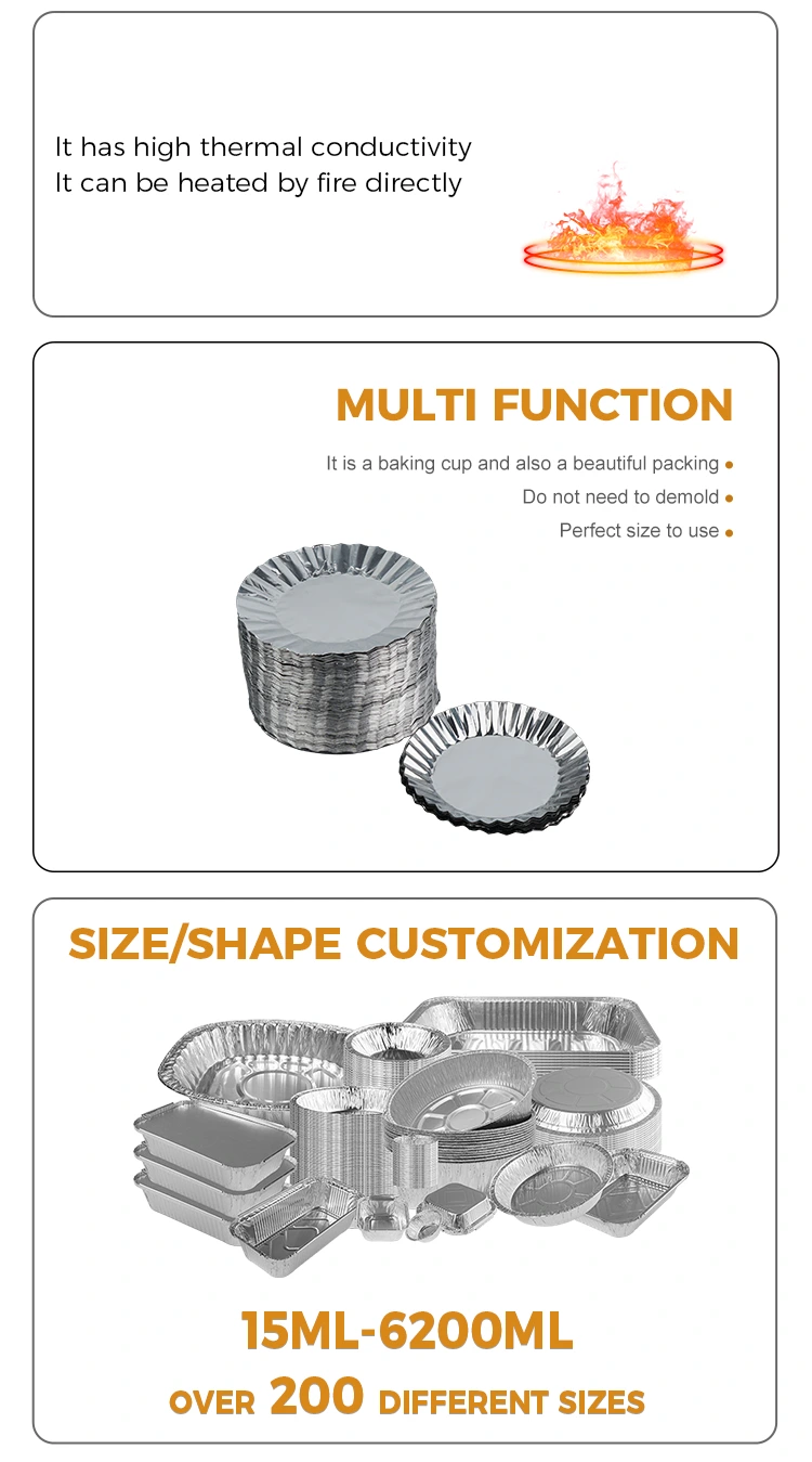 Krúžkovacia plechová plechovka so striebornou hliníkovou fóliovou nádobou poskytovanou dodávateľom hliníkovej fólie Yunchu, vyrobeného zo striebornej hliníkovej fólie, sú navrhnuté tak, aby vaše jedlo bolo chutné a vizuálne príťažlivé. Ako môžete zabrániť tomu, aby vaše jedlo kontaminovalo, zatiaľ čo stále vyzeráte rafinovanejšie a krásne? Odpoveď je použitie rohože okrúhleho plesňového fólie!