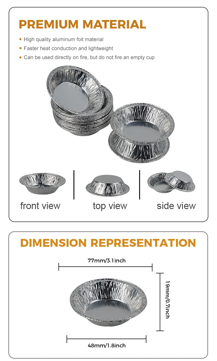 Yunchu hliníková fólia Dodávateľa Round Egg Tart pre občerstvenie Strieborná hliníková fóliová nádoba, jednotné vedenie tepla, nie je ľahké spáliť, dokonca aj vykurovanie, chutné a bezpečné. Okolo olejový a protizvukový, ľahko sa dostupný, okolitý zvrásnený tvar je ľahko prístupný, spodný povrch je okrúhly a hladký, jedným kliknutím rýchleho demoldingu a po použití sa stratí, nie je potrebné čistiť. Na pečené vaječné koláče, koláče, koláče, vaječné žĺtky, misky a ďalšie pochúťky a ďalšie pochúťky a ďalšie pochúťky a iné pochúťky sa môžu používať viacero veľkých kapacitných dizajnu, jednorazové použitie, nie je potrebné čistiť pracne, široko používané.