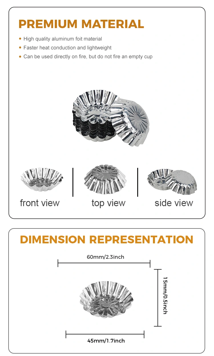 Yunchu hliníková fólia dodávateľ okrúhle vaječné koláč hračky na pečenie strieborná hliníková fóliová nádoba. Tento podnos na vaječný koláč vyzerá nielen krásne, ale tiež venuje osobitnú pozornosť praktickosti a bezpečnosti. Tento podnos na vaječný koláč má neplatný dizajn šálky s nekĺzavou textúrou, ktorá zvyšuje trenie a účinne zabraňuje skĺznutiu potravín, čím zvyšuje stabilné výsledky pečenia. Po druhé, dizajn čipky šálky úst môže byť zložený a uložený, čo je priestorovo úsporné aj prenosné, čo je ideálny pre rodiny alebo malé stravovacie zariadenia. Podnos na vaječný koláč je vyrobený z hliníkovej fólie triedy potravín, ktorý sa tvorí naraz a nemusí sa čistiť, čo výrazne zlepšuje účinnosť používania. Je vhodný pre všetky druhy kuchyne, či už sú pečené koláče, koláče, pečivo žĺtky, misky, môžu byť dokonale prezentované. Tento podnos na vaječné koláče schválil certifikáciu nemeckého ERP, certifikáciu EÚ SGS a certifikáciu systému riadenia kvality ISO9001, čím sa zabezpečila ochrana bezpečnosti a ochrany produktu na životné prostredie. Naše suroviny sú zdravé a ekologické materiály šetrné k potravinám, ktoré spĺňajú medzinárodné normy bezpečnosti potravín, aby ste mohli s istotou jesť.