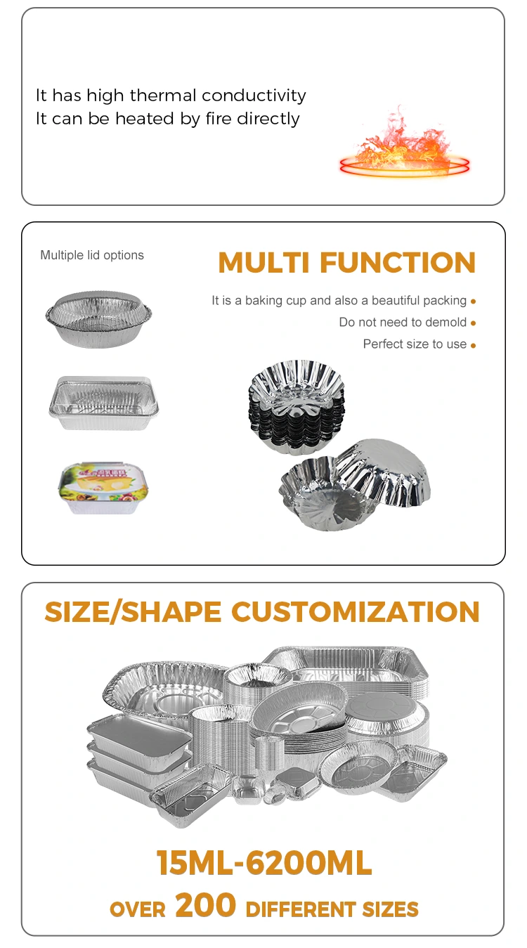 Hliníková hliníková fólia Dodávateľ okrúhleho koláča s vaječnými koláčmi na pečenie striebornej hliníkovej fóliovej nádoby, na stretnutie s rôznymi vkusami, rôznymi veľkosťami, na výber, hliníková fólia je bezpečný a netoxický, vyrobený z hliníkového materiálu fólií, s dobrou tepelnou vodivosťou, bezpečným plukovaným plukom, plukom s ľahkým plkom, plukom, ľahko šikmou šikmi, slabolmi, plukom, s ľahkou šikmi šikmi, šikmi, čitami, ľahko šikmi, šikmi, čitatými plukmi. Silná tepelná vodivosť, materiál z hliníkovej fólie nie je ľahké deformovať, vodotesné/odolné voči olejom, dobrá tepelná vodivosť, dá sa vložiť do parníka, vzduchového fritézy, grilovania atď. Ľahko deformovateľné, dlhodobé naparovanie, pečenie nebude deformovať ani prasknúť, vedie k vzhľadu produktu na dokončenie tohto účinku.