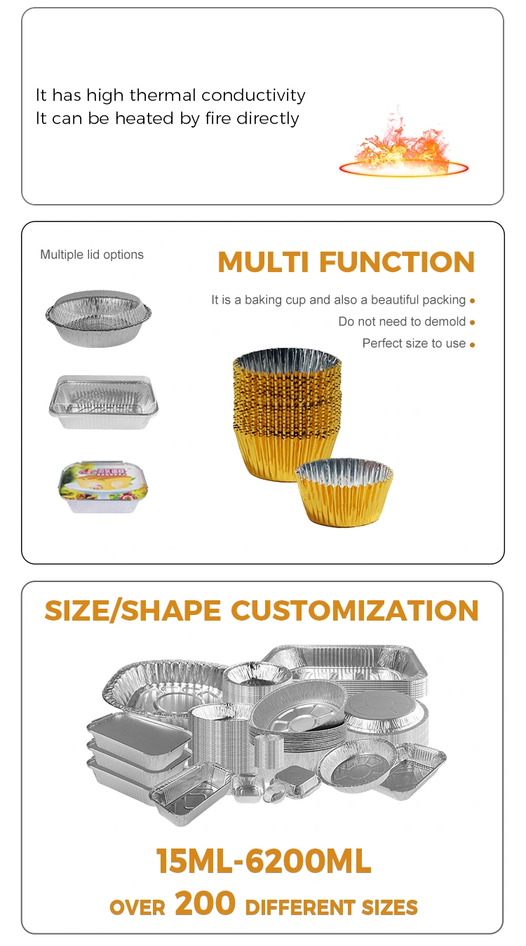 Tento okrúhly obal na pečenie striebornej hliníkovej fólie je vhodný na balenie všetkých druhov malých pekárskych výrobkov, prísne kontrolujeme každý výrobný krok z hľadiska kontroly kvality, aby sme zabezpečili, že všetky výrobky spĺňajú národné bezpečnostné normy a prešli nemeckým certifikáciou ERP, certifikáciou EÚ SGS a certifikáciou ISO9001.