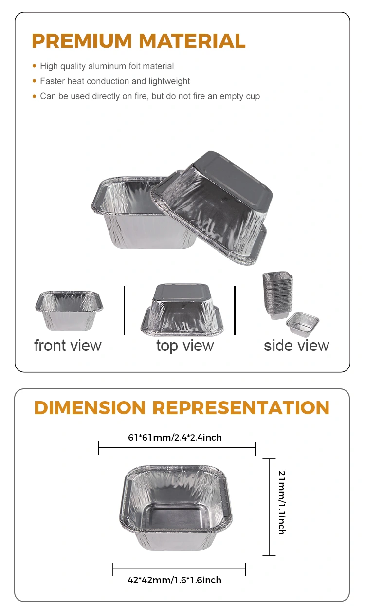 Yunchu hliníková fólia Dodávateľ Square Air Air Fryer Strieborné kontajnery hliníkovej fólie v stravovaní, výroba fritézy pre domácnosť, s dodávkou s sebou, omáčkami bufetov, banketmi, ale aj vhodnými pre dusené vajcia, čokoláda, sušienky, malé koláče, malé koláče, malé koláče, s malými tónmi, či už s potravinami alebo Sauces, môžu aplikovať každú kapilát. Malé hliníkové fólie môžu byť odložené pri pridávaní bodov do riadu, ale môžu sa tiež umyť a používať bez záťaže.